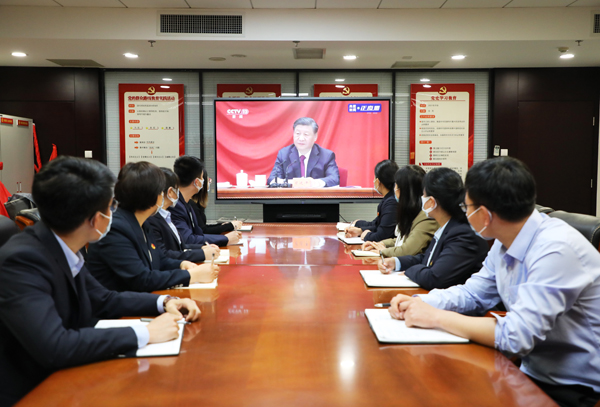 5月10日上午,慶祝中國(guó)共產(chǎn)主義青年團(tuán)成立100周年大會(huì)在北京人民大會(huì)堂隆重舉行,中共中央總書(shū)記、國(guó)家主席、中央軍委主席習(xí)近平出席大會(huì)并發(fā)表重要講話。我集團(tuán)組織青年職工收聽(tīng)收看大會(huì)直播,聆聽(tīng)習(xí)近平總書(shū)記的重要講話,以這種有意義的方式慶祝共青團(tuán)的生日。 上午10時(shí),青年干部職工代表準(zhǔn)時(shí)在會(huì)議室結(jié)合,聚精會(huì)神地收看慶祝大會(huì)的直播盛況。習(xí)近平總書(shū)記的講話鏗鏘有力、振奮人心,在公司青年職工中引起廣泛熱議,激發(fā)起奮進(jìn)新征程的青春動(dòng)能。 大家紛紛表示,要銘記歷史,傳承好紅色基因,樹(shù)立正確的人生觀、世界觀和價(jià)值觀,把個(gè)人志向與時(shí)代發(fā)展相融合,將自身價(jià)值與時(shí)代使命相結(jié)合;要不斷追求進(jìn)步,立足崗位、苦練本領(lǐng),刻苦學(xué)習(xí)、銳意創(chuàng)新,自覺(jué)擔(dān)當(dāng)重任、主動(dòng)作為,成為行業(yè)骨干、青年先鋒。同時(shí)積極向黨組織靠攏,以成長(zhǎng)為一名合格的共產(chǎn)黨員為目標(biāo),爭(zhēng)做有理想、敢擔(dān)當(dāng)、能吃苦、肯奮斗的新時(shí)代好青年,為集團(tuán)高質(zhì)量發(fā)展貢獻(xiàn)青春力量。(文/王然)