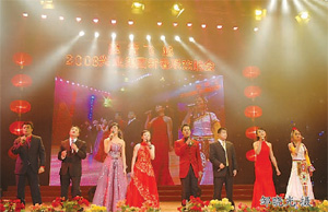 is gotta be you》展現(xiàn)了興業(yè)年輕一代的青春風采。魔術《劍懸少女》為晚會制造了緊張氣氛,我們的心真的懸了起來。專題片《來自墨西哥的祝!穾Ыo了我們奮斗在異國他鄉(xiāng)的同事們的真誠祝福,現(xiàn)場塵土飛揚,機器轟鳴,而他們卻在無怨無悔的奉獻著,我們用熱烈的掌聲向他們表示了超高的敬意!犊ㄩT狂想》跳出了興業(yè)人的熱情與奔放。吉他彈唱《一封家書》唱出了遠離家鄉(xiāng)、遠離父母、奮斗在興業(yè)各條戰(zhàn)線上的兒女們思家和感恩父母的情懷。舞蹈《軍中姐妹》展現(xiàn)了房產銷售一線的姑娘們的志氣與豪邁。舞蹈《康定情歌》那快節(jié)奏的舞姿淋漓盡致的散發(fā)出了興業(yè)人精神抖擻、昂首前進的精神風貌。歌舞《龍船調》給我們講述了一個少數(shù)民族愛情故事。三句半《說唱興業(yè)》那搖頭晃腦、詼諧的說唱風格逗的觀眾捧腹大笑。獨唱《遇上你是我的緣》用優(yōu)美的歌聲唱出了在興業(yè)工作的同仁們惜緣、惜福、惜興業(yè)的感情。由興業(yè)投資建校培育出的小精靈們?yōu)槲覀儙淼摹垛弮喉懚.敗,讓我們夢回童年。舞蹈《世紀春雨》的舞者都是年過半百的阿姨,她們用心靈跳出了對美好生活的贊美。獨唱《愛我中華》為整臺晚會獻上了一道專業(yè)的精美大餐。接著雜技《滑稽球》將整臺晚會帶到了最高潮,藝術家周天那搞笑的面孔、詼諧的表演手段,讓所有的觀眾都唏噓不已、掌聲不斷......整臺晚會歷時兩個多小時,節(jié)目品種齊全,高潮接連不斷,晚會氣氛熱烈、節(jié)目檔次質量高、觀眾激情高漲,,一曲《激情飛越》帶動了所有的演員及集團領導班子一同上臺同聲歌唱,最后晚會在悠 揚的歌聲中落下帷幕......